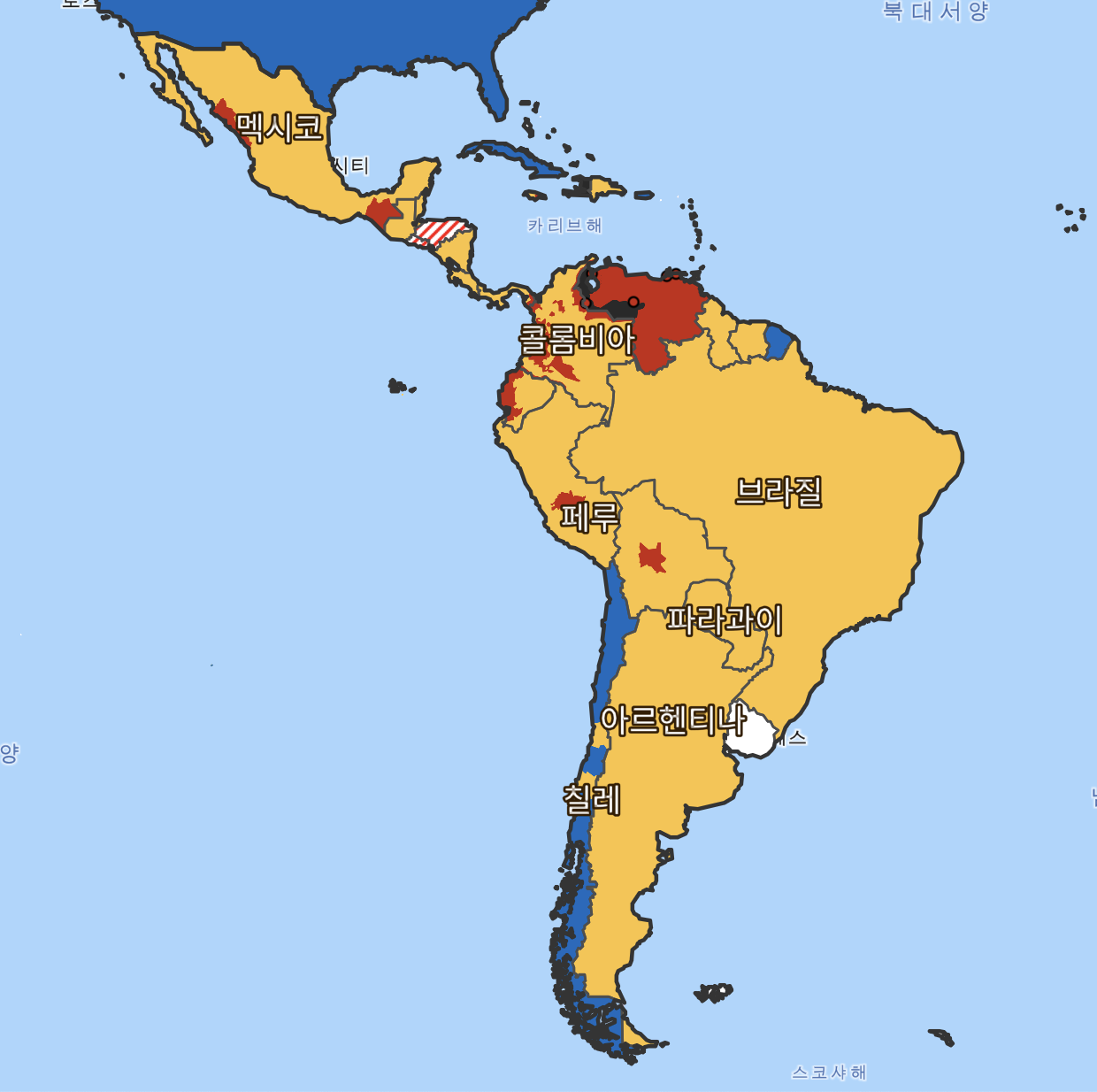 2025년 12월 기준, 대부분의 중남미 국가는 ‘여행자제국가’입니다.